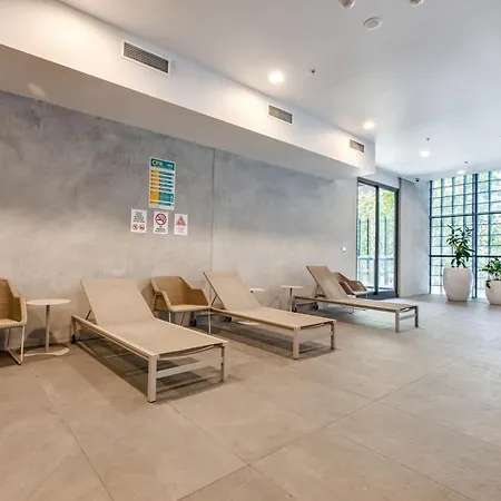 The 2-room Modern Nomads Stylish Minimalist 2Br Walk To Garden & Qv Market Apartment Melbourne welcomes travellers in the centre of Melbourne, located around 25 minutes' walk from Old Treasury Building. Situated only a few minutes from St James Old Cathedral, the 120 m^2 apartment entices guests with a swimming pool, an indoor pool.